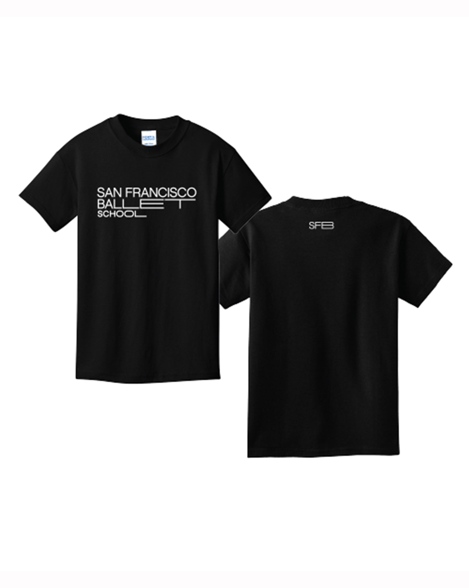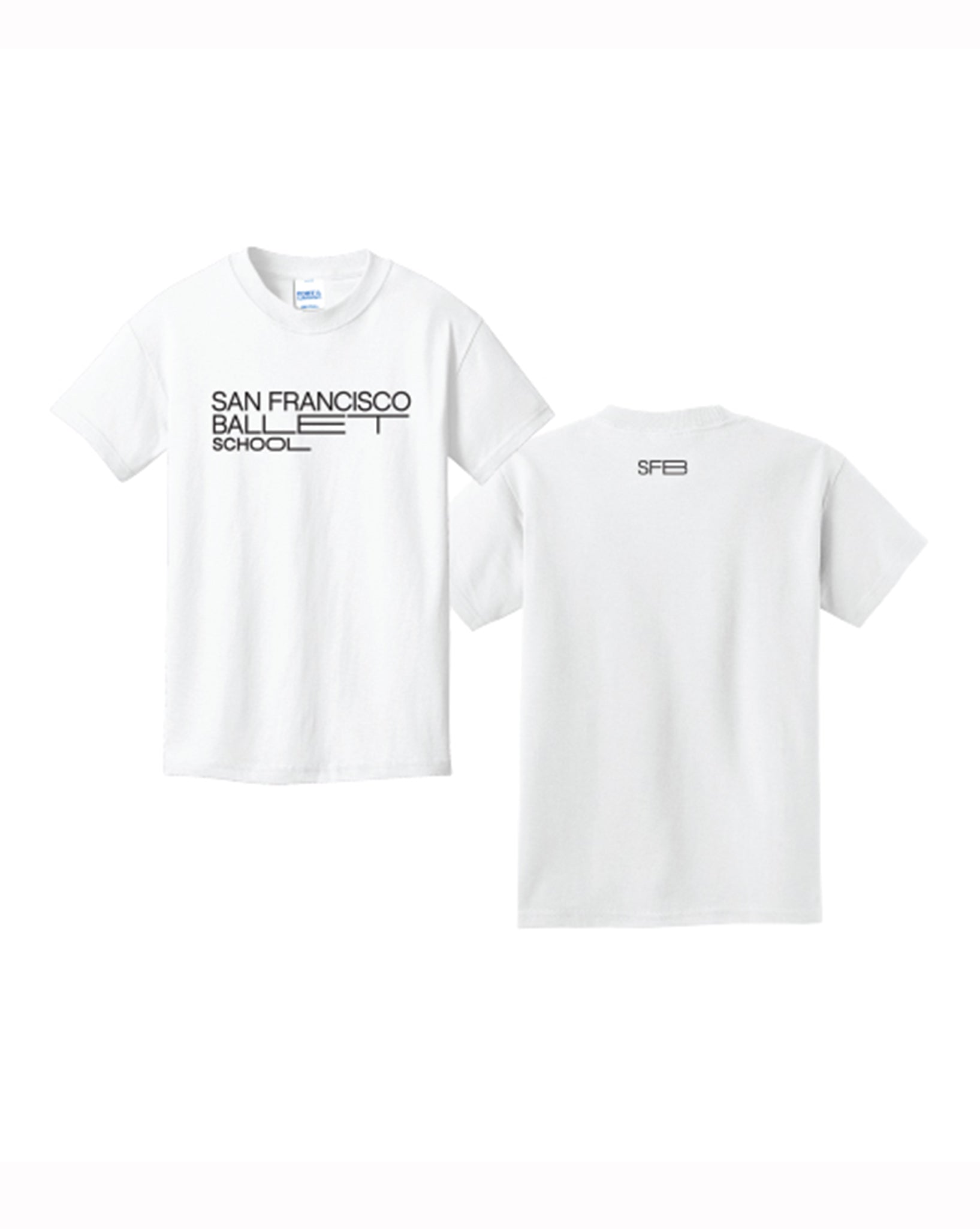 Our San Francisco Ballet School logo is printed 7" front and center with our SFB monogram on the back collar. 100% cotton, machine wash and dry.