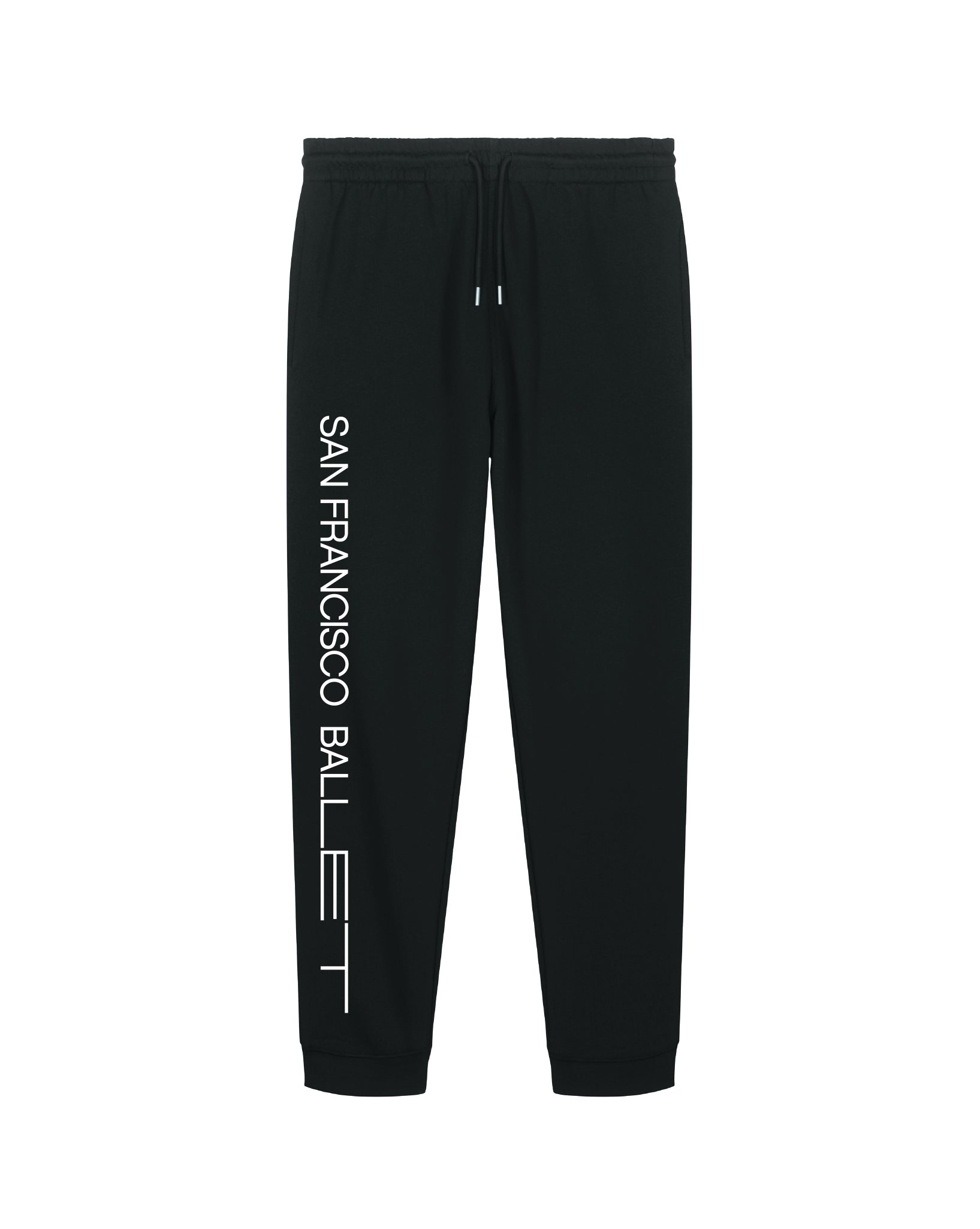 These unisex joggers are AWESOME; with a drawstring waist, side pockets and a back pocket, they are great for running around the city or workout at the gym. Our 20" San Francisco Ballet logo is positioned on the right leg, beginning just below the pocket and ending at the ankle. 80% sustainable cotton and 20% recycled polyester. You will love these comfy sweats. Available in small, medium and large, black only.